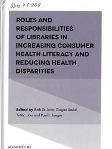 Roles and responsibilities of libraries in increasing consumer health literacy and reducing health disparities / edited by Beth St. Jean, Gagan Jindal, Yuting Liao, Paul T. Jaeger. -- First edition. -- Bingley : Emerald Publishing, 2021. -- xxii, 306 stran. -- (Advances in Librarianship 47). ISBN 978-1-83909-341-8.