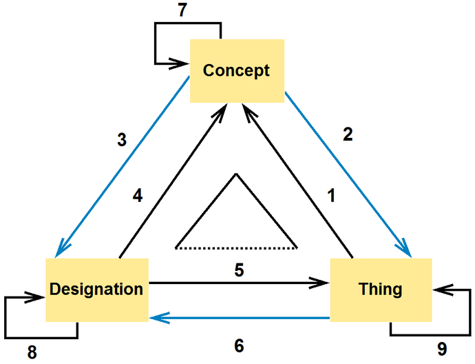 Comments to the relationships shown in the semiotic triangle in Fig. 2:8