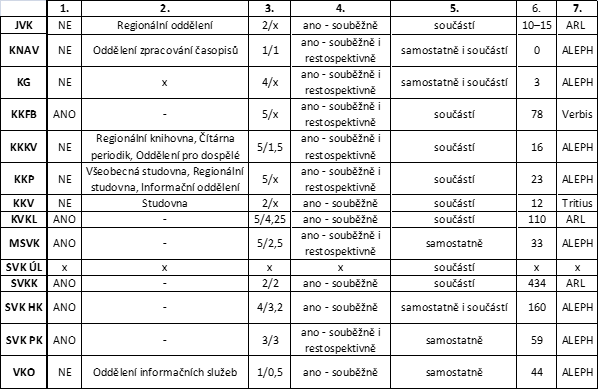 2. knihovny zajišťující zpracování bez dotační podpory.