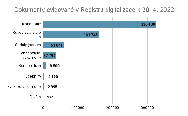 Graf 1 Dokumenty evidované v Registru digitalizace k 30. 4. 2022