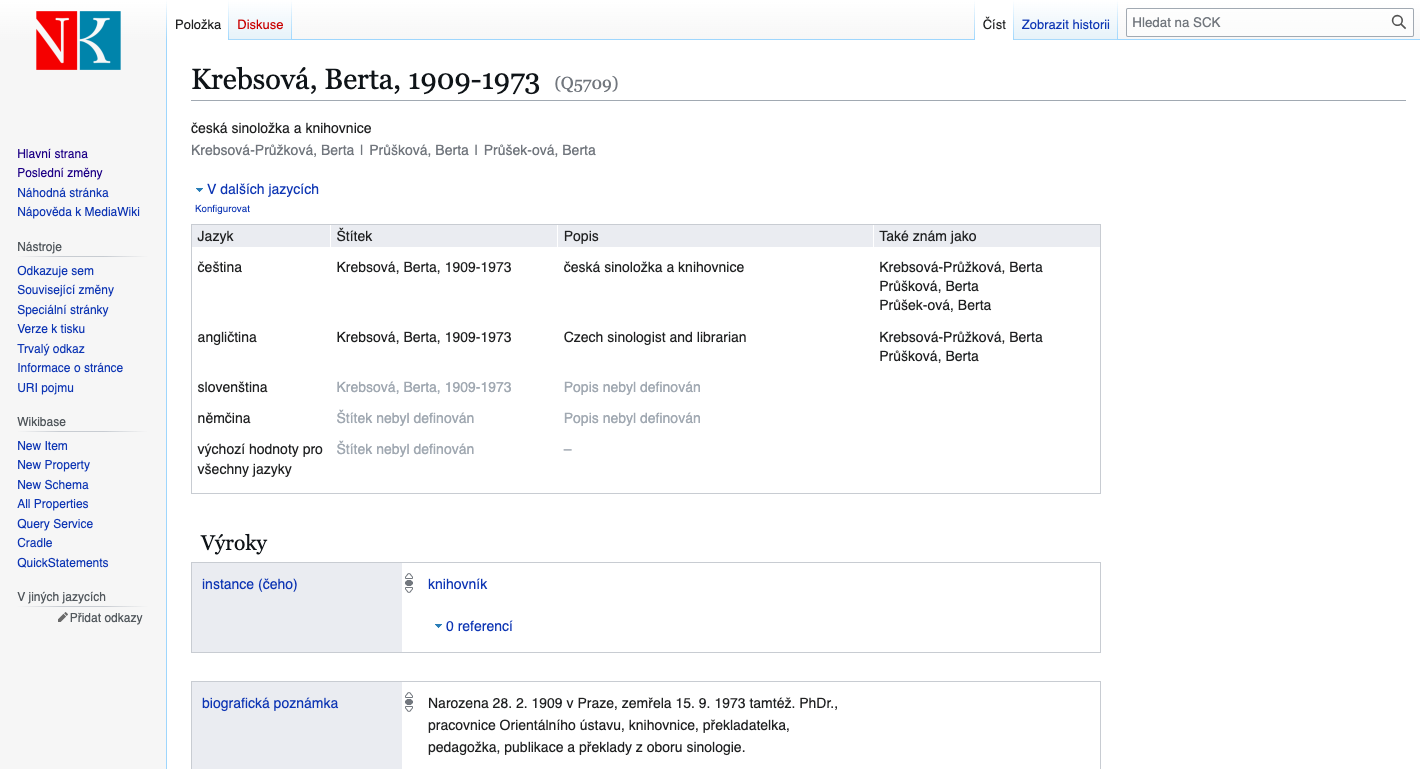 Od konce listopadu 2023 je SCK dostupný v podobě otevřených dat. Po migraci dat do Wikibase bude možné využít další možnosti, které Wikibase nabízí. Přibydou další pole umožňující sledovat vliv Státní knihovnické školy a tzv. Tobolkových knihovnických kurzů na vzdělávání knihovníků a vliv knihovnických spolků na rozvoj knihovnictví díky poli registrujícímu členství knihovníků v knihovnických spolcích.